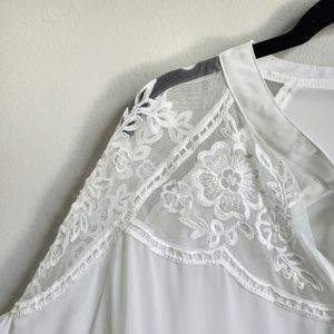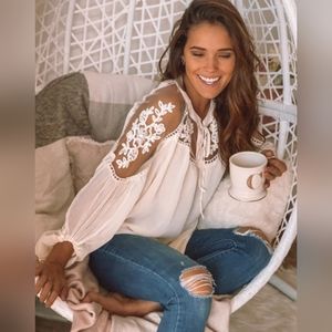 NEW Boho Embroidered Sheer Bishop Sleeve Gypsy Top Off White