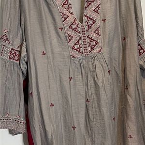 Johnny Was long gray and red tunic. SZ XL .