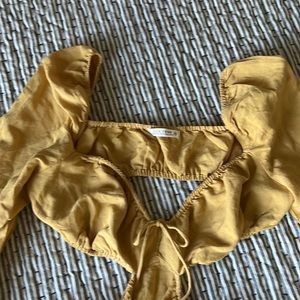 Mustard cut-out puff sleeve dress, M, 12th Tribe