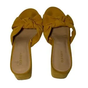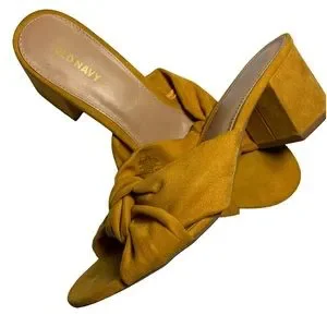 Old Navy Faux Suede Knotted Mustard Block Heel Mules Size 9