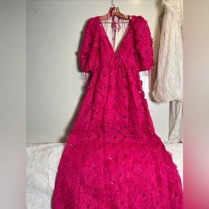 For Love & Lemons Leighton Serena 3d Floral Textured Cute Ties Maxi Dress