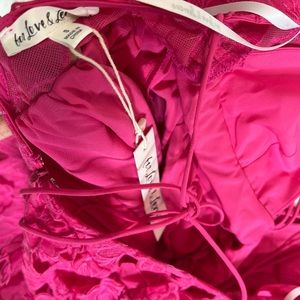 Features: Exaggerated tie detailing, sheer sleeves and bottom piecing, partial lining, deep V-neckline, cutout at back