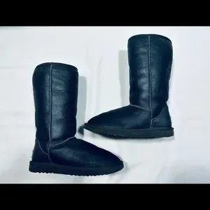 UGG Pewter Metallic Classic Tall Shearling Boots - Sz W5 - Rare Style 5823