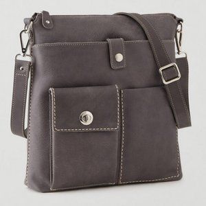 Two front pockets: One with turnlock & One slip pocket with heavy stitching detail