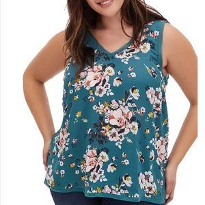 Torrid Teal Floral Georgette Raw Chiffon Trim Tank Plus Size 5X