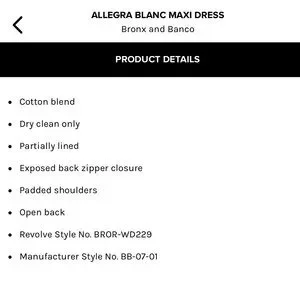 Bronx and Banco Allegra blanc maxi dress. Lined, shoulder pads, exposed back. New, new worn.