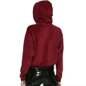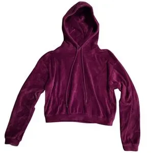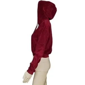 Hot Topic Burgundy Velour Girls Crop Hoodie
