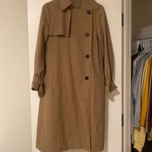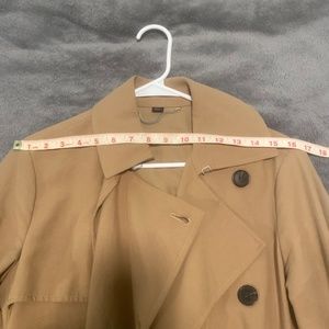 Please take a look at the second photo that shows the fabric is lighter (left that side by the window) than the rest of the coat. Also missing the wrap around and why it’s at the price.