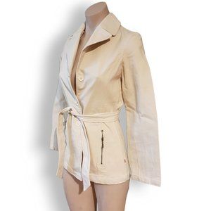 Metrogirl Y2k, cream, belted, stretch denim corduroy jacket coat fits AU 6 8 10