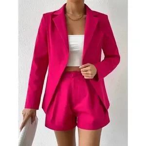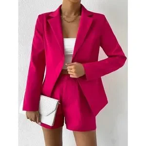 2 piece set Lapel collar Single Button Blazer & tailored Shorts hot pink