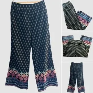 Xhiliaration Allover Geometric Print Wide Leg Pants Black, EUC - Size Medium