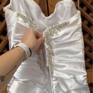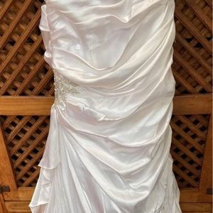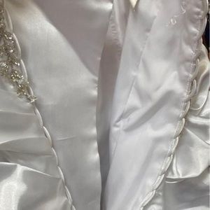 It does have the flaws as described in the original listing but is otherwise a truly stunning dress. Fits like a size 12 (in wedding dress size) but is a corset so there is some flexibility-and the model was 5'9".
