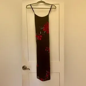 Black beaded 90s midi slip dress size xs or 0, fitted. The straps are cross back and it is double lined. Square neckline.