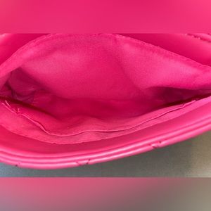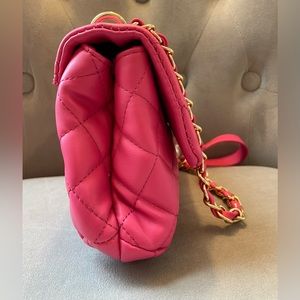 NWT Beautiful quilted vegan leather bag in hot pink. Features five pearls on the should strap, divided inside with zip interior pocket in one section and an open pocket in the other. Perfect for a night out or wear casual!