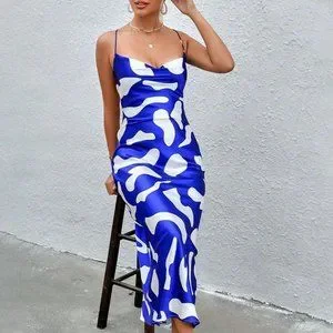 Blue & White Preppy Womens Allover Print Draped Collar Cami Dress