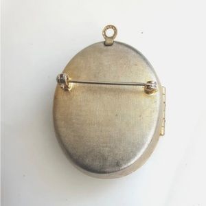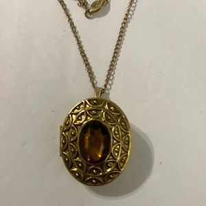 Vintage Avon Perfume Locket Necklace/Brooch W/Amber