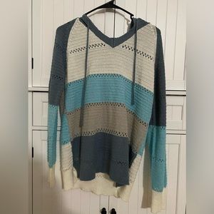 Biucly Color Block Knit Top - Medium - Light Weight- Long Sleeve - casual - blue & white - perfect hoodie for beach.