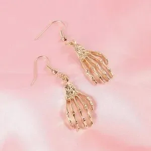 Get these spooky gold skeleton bone hand earrings for Halloween. Or wear them year round for a perfect goth accessory. Not too over the top, but still make a statement with these dangle earrings