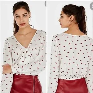 ✨️Final Price✨️Express Sz M Red Lips Patterned Long sleeve Crop top