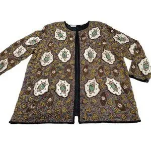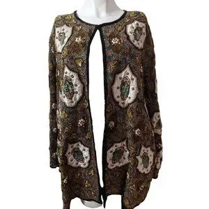 Silky Nites By Cherish Vintage Black Beaded Sequin Formal Elegant Cardigan 24/26