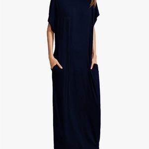 Short sleeve pocketed, oversize loose lounge, maxi dress.
