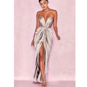 House Of CB 'Sigourney' Mink Satin Draped Front Maxi Dress NWOT