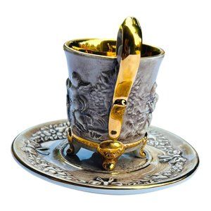 Vintage R. Capodimonte Italy Cherub Angel Gold Trim Tea Cup & Saucer GV