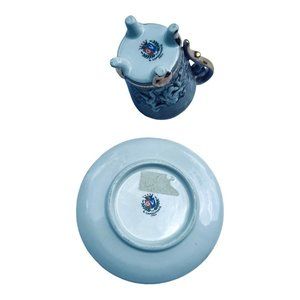 Vintage, Capodimonte Made In Italy Porcelain Four-Footed Blue flow Cup And Saucer. Cup is ornamented by cherubs and gold covering inside cup and on the edges. Good condition. Everything else is as expected from antique vintage.