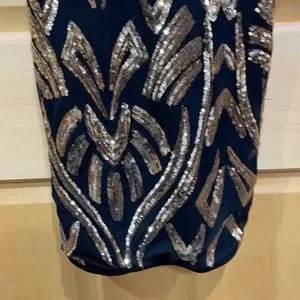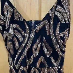 Privy privately privileged gold sequin black skinny strap zipper back strappy sides size S. Formal, dressy.