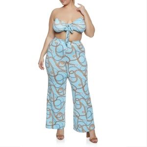 ⚜️ Plus Size Chain Print Crop Top and Wide Leg Pant Set - 2 Colors ⚜️