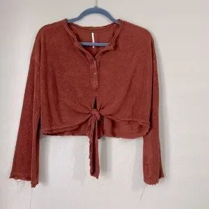 Free People XS Bell Sleeve Tie Front Cropped Long Sleeve