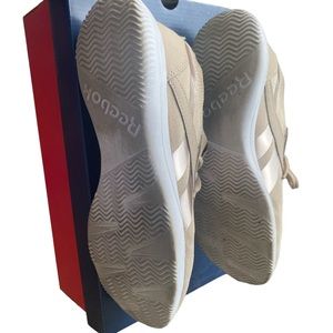 Great pair of comfortable easy to wear Reebok walking shoes. Lace up. Comfort footbed. Easy to slip into. Cream/light tan/rose gold color. In original box. Preowned with very minimal signs on outer sole of wear. No cancellations. EUC.