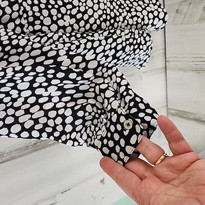 runs down front of blouse on both sides, pictured, most blends in because of the pattern on the blouse.