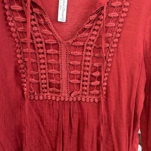 Boho, beautiful rich rust color top!