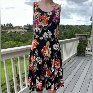 I purchased this sweet dress from a boutique owner and vendor at a Blueberry Festival in Maine. The floral design is pretty, the material lightweight, and pockets too...this dress is simply fun and comfortable!!!