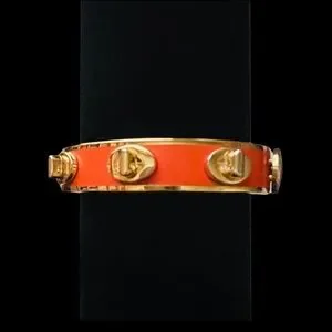 Beautiful Coach enamel bracelet in the most gorgeous orange color with a gold tone.