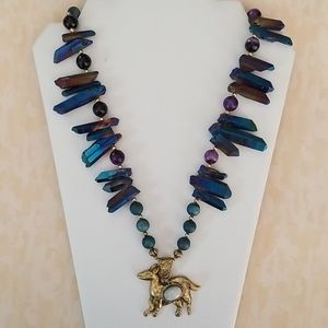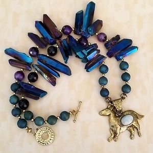 Accented with genuine Amethyst beads, gold tone metal spacer beads and Druzy agate beads.