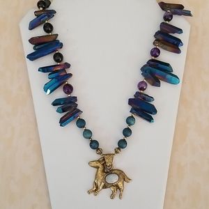 Hand Crafted Boho Tribal Moonstone Tibetan Rainbow Crystal Druzy Agate Necklace