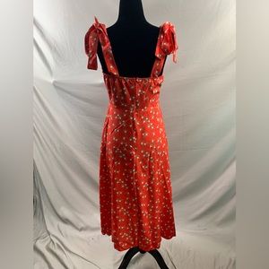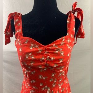 Red Ditsy Floral Print Ruched Bust Split Thigh Cami Dress