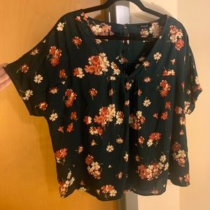 MADEWELL Top Flowy Floral Print Short Sleeve V Neck Blouse Dolman Sleeve Size XS