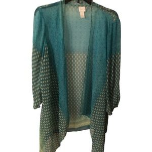 Chico’s * GreenDuster* Kimono Waterfall Styled Top. 3/4 Sleeve. Versatile Fashion Look!!! Size 2 (check Chico’s size chart). EUC.