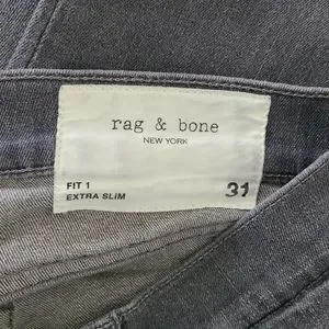 RAG & BONE Mens Jeans Grey Fit 1 Extra Slim Legs Button Fly Denim Size 31
