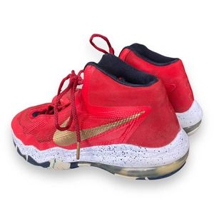 The shoe is available in a limited-edition colorway of black, red, and white with gold swoosh. The shoes have been preloved and shoe signs of wear. Please view images carefully before purchasing. No returns