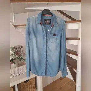 Superdry Size M Womens Button Up Long Sleeve Denim Shirt Collared. In very good condition. If you need any more information or more photos/measurements please let me know - I normally reply super fast :)) I'm selling more clothes/shoes/accessories (in different sizes) so if you're interested please have a look - I offer bundle discounts. I also love receiving offers so feel free to send them my way :)
