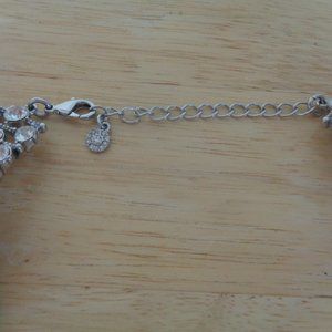 A beautiful statement necklace in silver with different sized crystals throughout, it has a small adjustable chain at the back to alter the length should you need to. It is about 18" inches long and looks stunning.