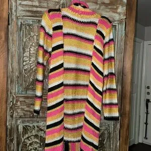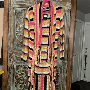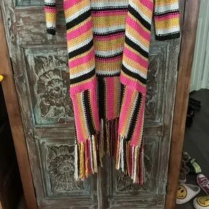 Blue B long sweater fringed cardigan. Small NWT.