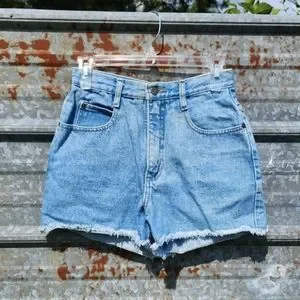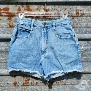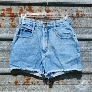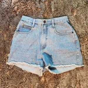 Cute stonewash high waisted shorts that are ready for summer! These are not cut offs, they are sewn and frayed at the bottom. Two pockets and coin pouch in the front with two pockets in the back. SIZE tag has completely faded. Excellent vintage condition from a pet and smoke-free home. The only sign of wear is a tiny spot shown in the last pic (not noticeable when wearing) MEASUREMENTS approx: Waist 24 inches, Rise 11 inches, Inseam 3 inches #352