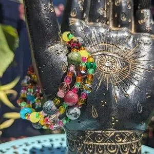 Beads include Fancy Jasper, Bright Blue Opal, Glass Rondelles, sparkly Mermaid Lava Stone & rainbow colored tiny glass sead beads & more