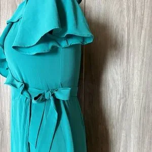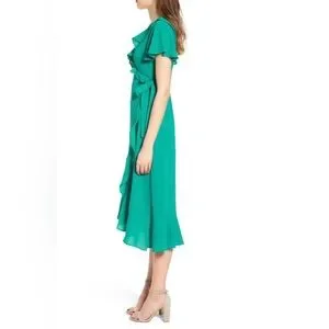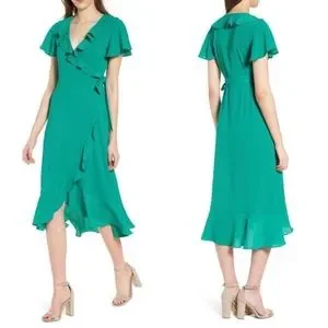 Chelsea28 emerald green ruffle wrap midi dress, size XS