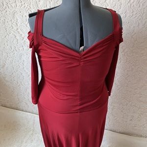 EUC Evanese burgundy Maxi Cold Shoulder Dress, sz 2x